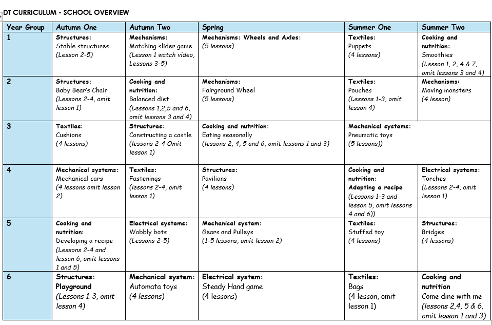 Our whole curriculum is comprehensibly planned and clearly sequenced and D & T follows this consistent design, effectively adapting and developing to meet the needs of ALL pupils, including those with Special Educational Needs and/ or Disabilities and those that are disadvantaged.